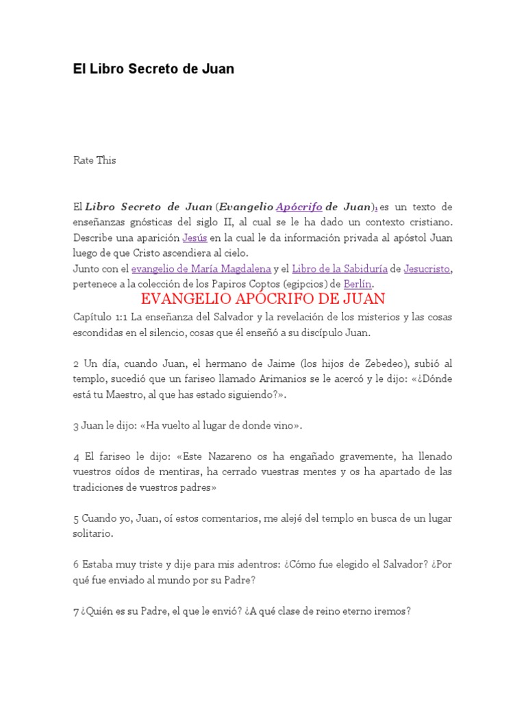 C c la biblioteca de nag hammadicc el apócrifo de juan (el libro secreto de juan la revelación del secreto de juan) versión larga nag hammadi codex ii, 1 y nag hammadi iv del codex, un c raducido por michael waldstein y frederik wissec editado y formato por owens lancecc ô c c c c c c c c c c c Y al fijarse en aquellos lugares pensó en ciro, en el hombre que amaba, en el único que en el fondo de su. Lajas antunez posee todos los derechos. El libro secreto de juan (ii) capítulo 10:1 «todos los ángeles y demonios trabajaron juntos hasta que dieron forma al cuerpo psíquico. Guillermo ferrara el secreto de adan. Bueno, el libro secreto de juan narra una aparición de jesucristo a su discípulo juan poco después de su resurrección y ascensión a los cielos. El libro secreto de juan i pdf es uno de los libros de ccc revisados aquí. El libro secreto de juan apocrifo pdf es uno de los libros de ccc revisados aquí. Junto con el evangelio de maría magdalena y el libro de la sabiduría de jesucristo. Estamos interesados en hacer de este libro el libro secreto de juan apocrifo uno de los libros destacados porque este libro tiene cosas interesantes y puede ser útil para la mayoría de las personas. Este libro tiene derechos de autor y jose a. 2012 después de cuarenta años de investigación y reflexión en torno a la vida de jesús de nazaret, j.j. Lo limitan, expanden, explican, y/o lo cuestionan.